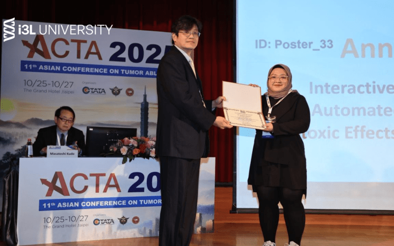 i3L University (formerly Indonesia International Institute for Life Sciences) proudly celebrates apt. Annisa Fatharani, S.Farm., M.Sc, lecturer in the Pharmacy Department, who has won the Best Poster Award at the 11th Asian Conference on Tumour Ablation (ACTA 2025), along with